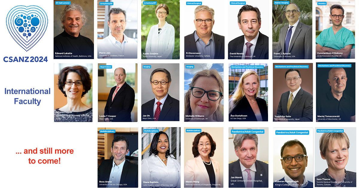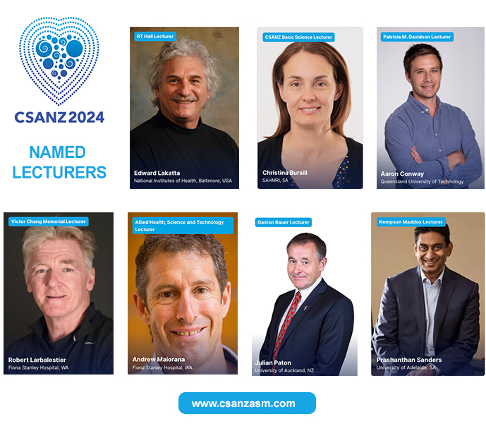 Please see below the invited 2024 CSANZ ASM Named Lecturers who have confirmed their spot at the podium for the 72nd Annual Scientific Meeting of the Cardiac Society of Australia and New Zealand.