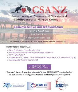 Applications are now open for the 2023 CSANZ Cardiovascular Nursing Council (CNC) Awards to recognise outstanding cardiovascular nurses and their contribution to research and/or practice. Application is by nomination, please put forward your outstanding junior colleagues for these awards.